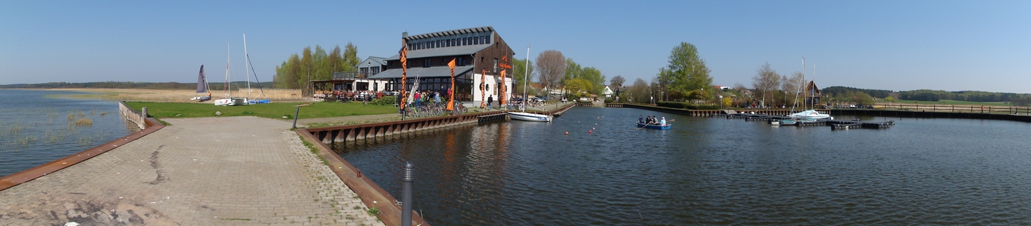 Achterwasser mit Hafen, Windsurf-, Kite- und Segelschule sowie Restaurant
